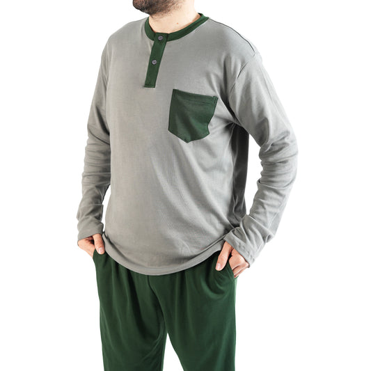 PIJAMA DE HOMBRE INVIERNO 100% ALGODÓN PIMA GRIS CON VERDE
