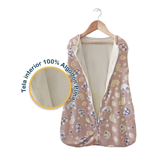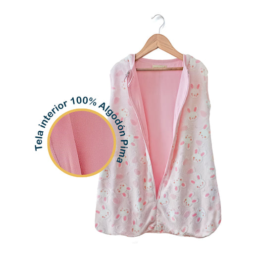 SAQUITO DE DORMIR OTOÑO - INVIERNO FELPA ANTIALÉRGICA CON INTERIOR 100% ALGODÓN PIMA ROSADO CONEJITOS