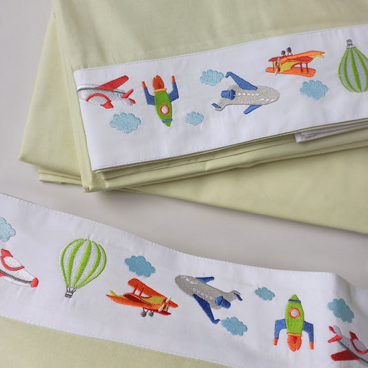 JUEGO DE SÁBANAS AVIONES 100% ALGODÓN PERUANO 217H VERDE