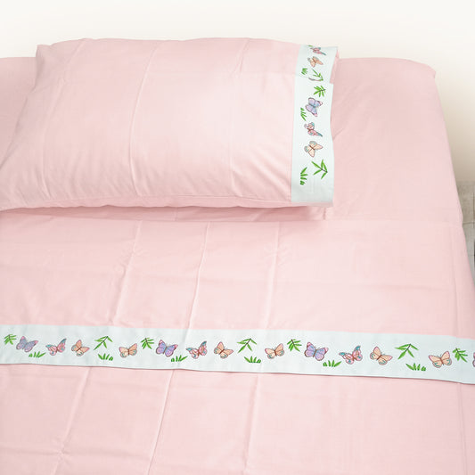 JUEGO DE SÁBANAS MARIPOSAS 100% ALGODÓN PERUANO 217H ROSADO