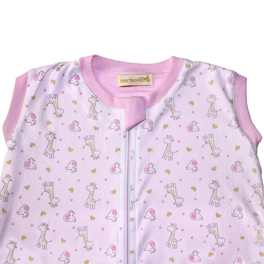 SAQUITO DE DORMIR PRIMAVERA - VERANO 100% ALGODÓN PIMA ROSADO JIRAFAS