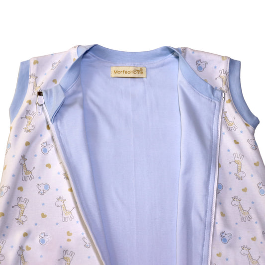 SAQUITO DE DORMIR PRIMAVERA - VERANO 100% ALGODÓN PIMA CELESTE JIRAFAS