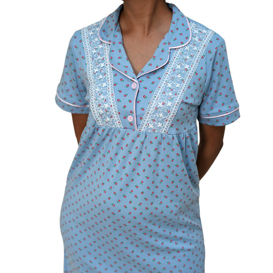 Camisón de mujer MorfeoHome - Escila (verano) celeste con flores rosas