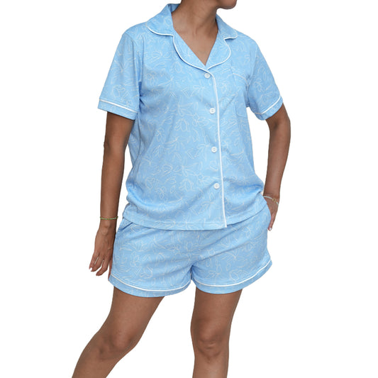 Pijama de mujer MorfeoHome - Cielo (verano) celeste con flores blancas