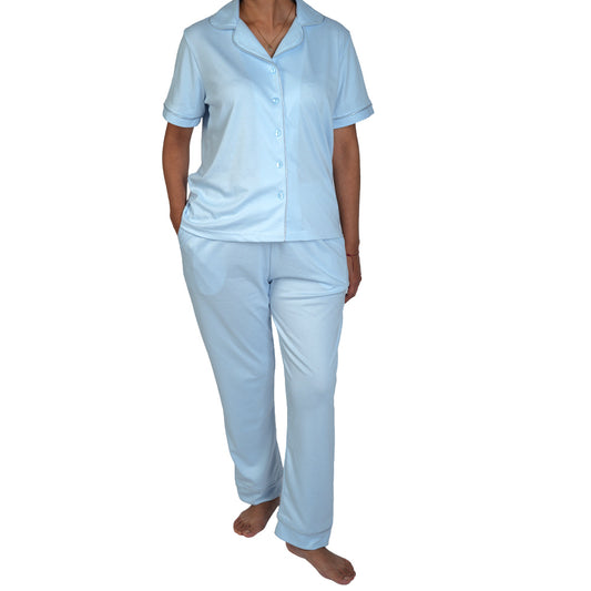 Pijama de mujer MorfeoHome - Brissa (primavera - verano) celeste con rayas delgadas
