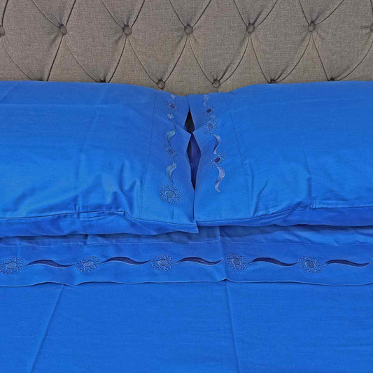 JUEGO DE SÁBANAS CLASSIC 100% ALGODÓN PERUANO 217H AZUL MARACAIBO